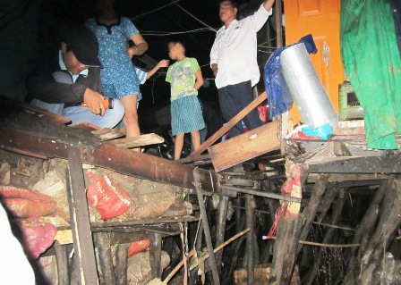Ông Hoàng kể lại: “Khi cả nhà tôi đang ăn cơm thì nghe tiếng sột soạt bên dưới nền nhà, sau đó tôi chạy ra xem thì phát hiện nền đất có dấu hiệu sụt lún, tôi hô hoán cho mọi người bỏ chạy ra ngoài. Chưa đầy hai phút sau cả ngôi nhà đã nằm gọn dưới lòng sông”.