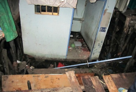 Căn nhà bị kéo sập xuống sông |