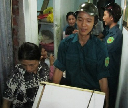 Lực lượng dân phòng chuyển đồ giúp dân ra bên ngoài |