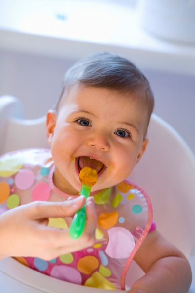 - Các mẹ hãy kiên trì giúp bé tập nhai dần các món ăn khác nhau và chế biến cho bé nhiều món ăn với màu sắc hấp dẫn như màu vàng của táo, xoài, đu đủ, màu đỏ của cà rốt, bí đỏ, màu xanh của súp lơ, bí xanh.
