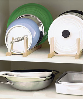 Nắp nồi tưởng nhỏ nhưng nếu không được sắp xếp gọn gàng, chúng sẽ dễ dàng khiến căn bếp của bạn trông bừa bộn. Hãy sử dụng một vật lưu trữ chuyên dụng để đựng tất cả các loại nắp nồi. Với cách này, khi nấu nướng, cần loại nắp cho nồi nào, bạn sẽ dễ dàng tìm thấy chúng mà lại giúp bếp trông gọn gàng.