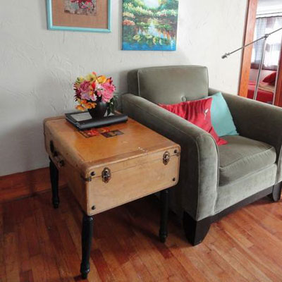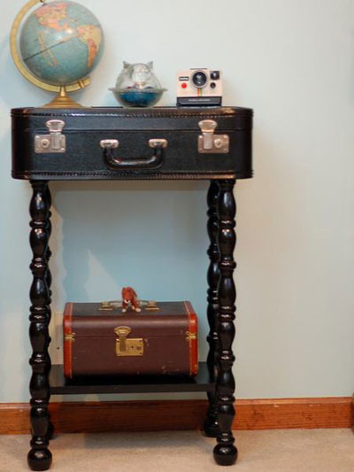 Chiếc vali cũ trở thành chiếc bàn nhỏ? Nghe có vẻ khó tin nhưng là điều hoàn toàn có thể thực hiện được. Bằng cách lắp thêm chân vào mặt dưới của chiếc vali, bạn sẽ có ngay chiếc bàn nhỏ xinh độc đáo. Với chiếc bàn này, bạn có thể đặt nó ở bất kỳ góc nào trong nhà như bên cạnh đầu giường, bên cạnh sofa hay cạnh bàn làm việc... Để chiếc bàn trông đẹp mắt hơn, bạn có thể sơn sửa lại bề ngoài của nó.