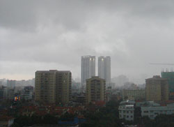 Mây dông vần vũ trên bầu trời Hà Nội (Ảnh: Trần Vũ). |
