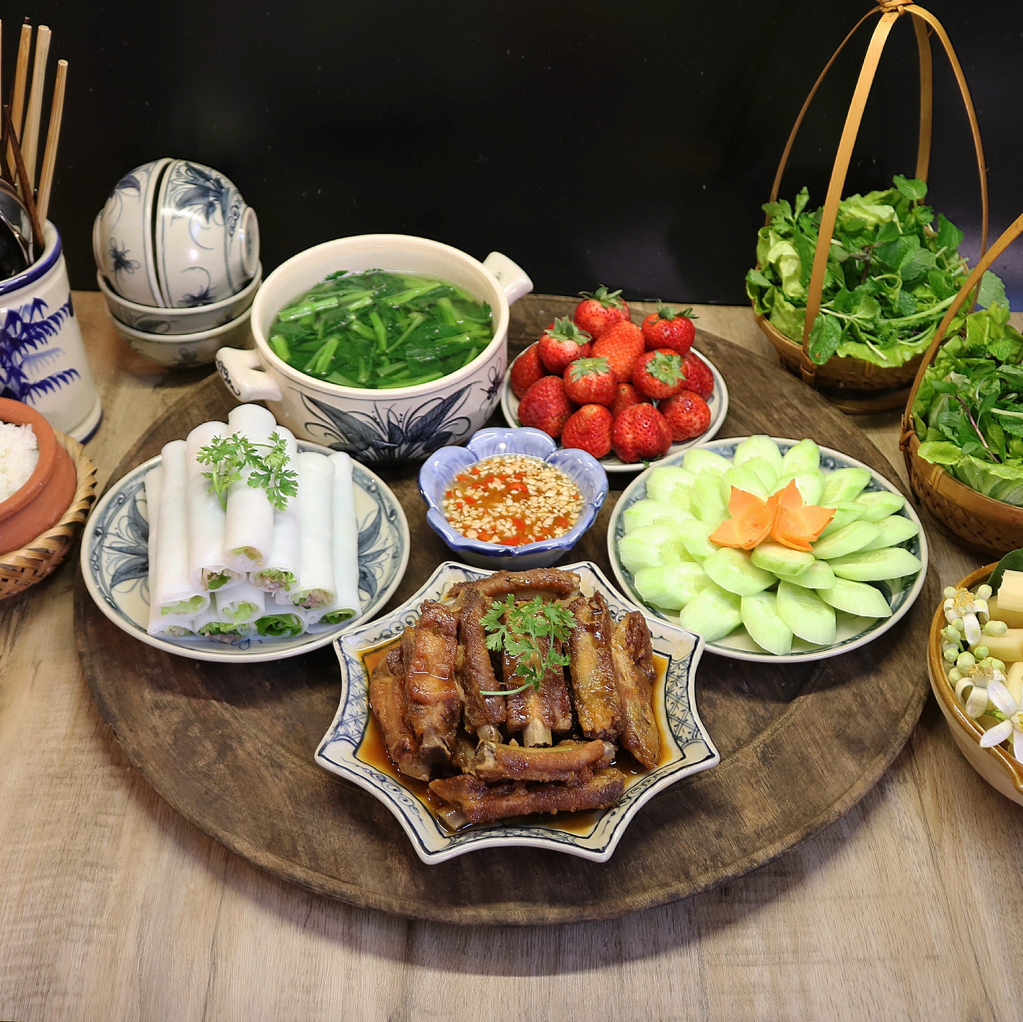 Ăn - 1 ngày trướcGĐXH - Cựu siêu mẫu Huỳnh Thanh Tuyền thường bày biện nấu nướng các món cơm nhà dân dã hương vị Bắc - Nam cho chồng và bốn con như bún, canh, xôi.
