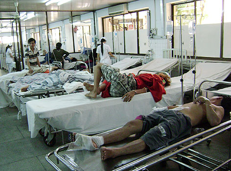 Các nạn nhân bị bỏng nặng do điện giật đang được cấp cứu, điều trị tại Bệnh viện đa khoa Bình Dương. |