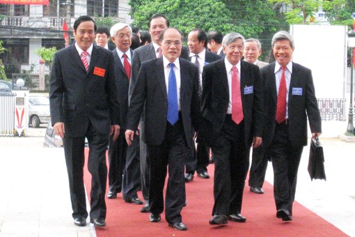 Phó Thủ tướng Thường trực Chính phủ Nguyễn Sinh Hùng trò chuyện với các đại biểu dự đại hội |