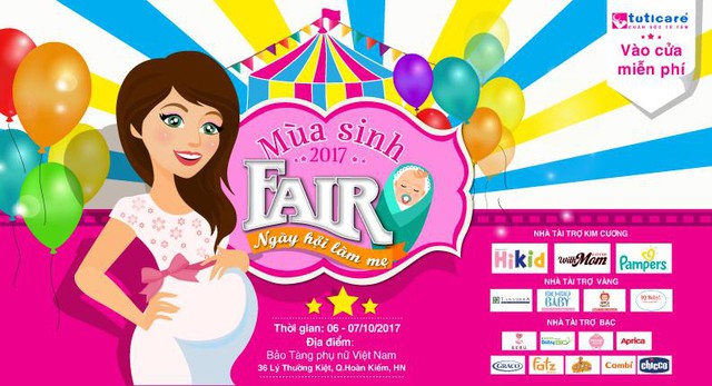 Mùa sinh fair 2017 – ngày hội làm mẹ lớn nhất trong năm sẽ được Hệ thống cửa hàng mẹ và bé Tuticare phối hợp lớp Bảo tàng Phụ nữ Việt Nam tổ chức vào ngày 06/10 tới đây với sự tham gia của hơn 100 thương hiệu hàng đầu uy tín chất lượng cho Mẹ và Bé.