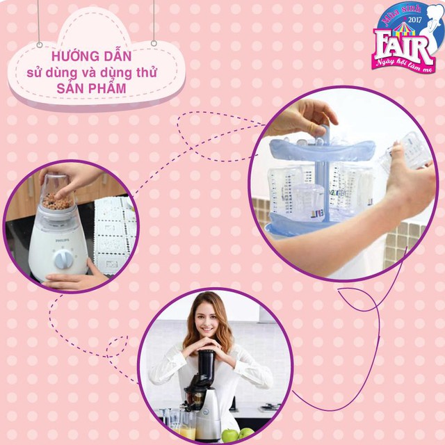 Mẹ sẽ có cơ hội được trải nghiệm dùng thử các sản phẩm HOT và cực kì hữu ích dành cho công cuộc chăm sóc bé, hướng dẫn chi tiết về cách sử dụng các sản phẩm từ đơn giản tới phức tạp nhất. Ngoài ra, mẹ và bé sẽ có cơ hội nhận những phần quà hấp dẫn từ những nhãn hàng nổi tiếng.