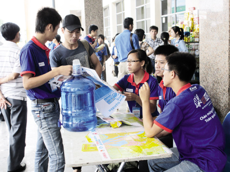 Bạn Ngô Thị Hòa, đội sinh viên tiếp sức mùa thi ĐH Giáo dục tâm sự: "Năm nay là năm thứ 2 mình đi tiếp sức mùa thi, năm trước mình tình nguyện tại các chốt thi. Năm nay chuyển qua tình nguyện tại bến xe. Mình thấy công việc này rất ý nghĩa vì phần nào đó giúp các sĩ tử có thể yên tâm thi cử".