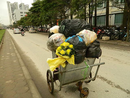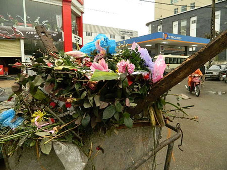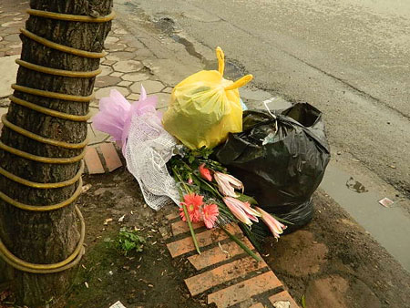 Nhiều đóa hoa tươi thắm thể hiện tình thương yêu dành cho những người phụ nữ nhân ngày mùng 8/3, sang buổi sáng hôm sau đã thấy xuất hiện... trên xe rác.