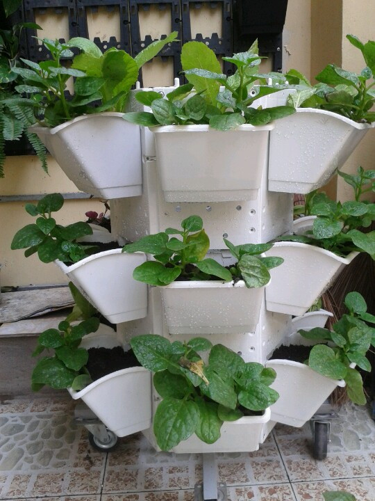 Tháp trồng rau nhiều cánh có thể tìm thấy ở bất cứ cửa hàng cây cảnh, chợ hoa,...trên thị trường. Để có đủ rau ăn cho một gia đình khoảng 3,4 người sẽ tốn khoảng 5 tầng rau với loại tháp chậu 4 cánh hoặc 6 cánh. Ví dụ như mỗi chậu có 6 cánh nên trong trong 1 chậu trồng được tới 6 cây riêng biệt. Một mét vuông có thể trồng tới 37 cây rau các loại.