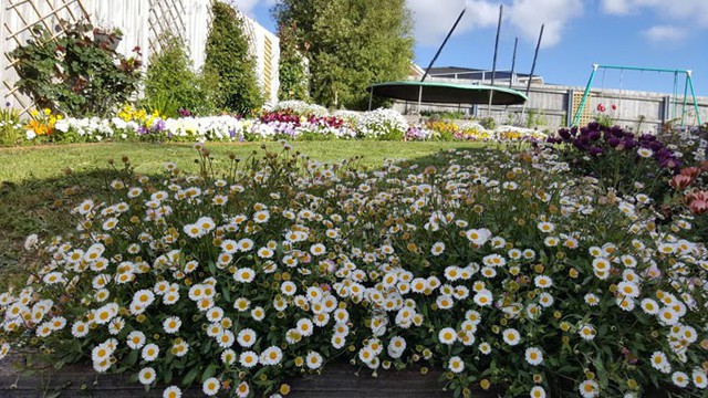 Để có khu vườn rợp sắc khoa quanh năm, chị Luyến Morrison ở Australia phải làm việc liên tục suốt hai tuần để phá 50 % diện tích cỏ.