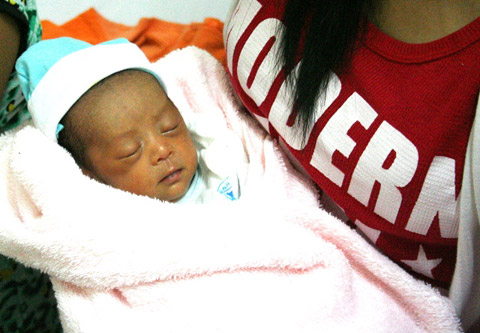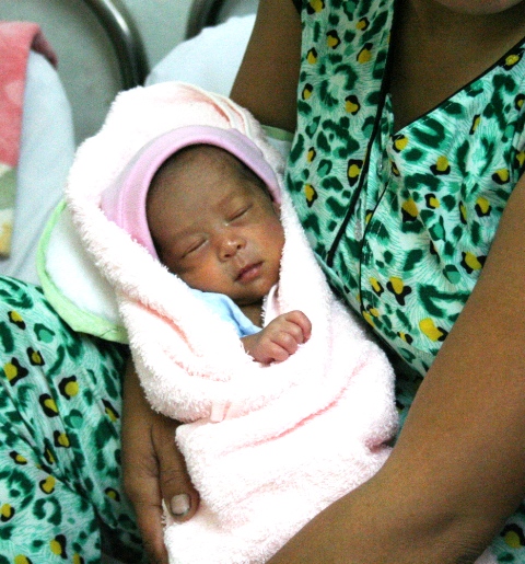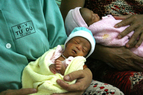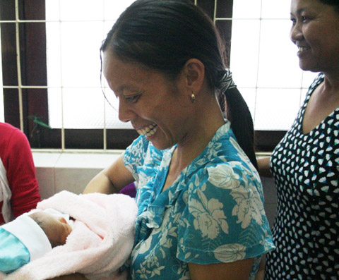 Một bà mẹ "thích con gái" đang bồng ké khi vào thăm |