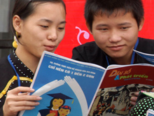 Sách, báo truyền thông dân số về với học sinh trường Dân tộc nội trú tỉnh Lạng Sơn. Ảnh: Dương Ngọc |