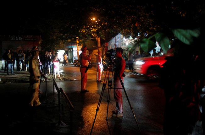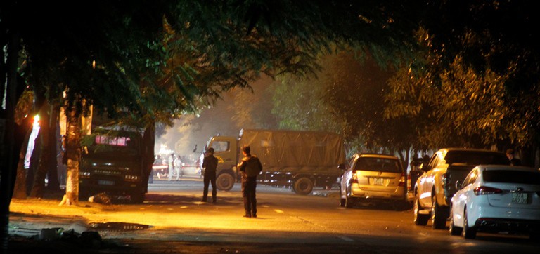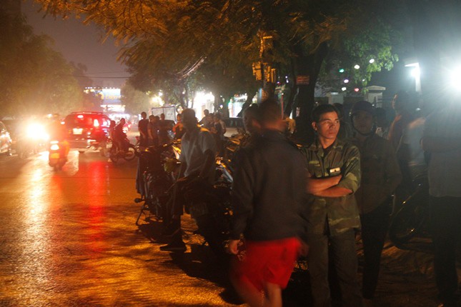 Ghi nhận tại hiện trường vụ việc, dù trời đã tối và bắt đầu có mưa nhưng nhiều người dân hiếu kỳ vẫn đứng kín hai đầu đường Hồng Bàng để theo dõi diễn biến sự việc. Trong khi đó, lực lượng chức năng vẫn tiếp tục điều thêm xe chuyên dụng và lực lượng đến hiện trường. Đại tá Nguyễn Mạnh Hùng – Phó giám đốc Công an tỉnh Nghệ An cũng đang có mặt để chỉ đạo xử lý vụ việc.