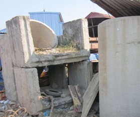 Đống bê tông - nơi phát hiện ra xác cô gái xấu số |