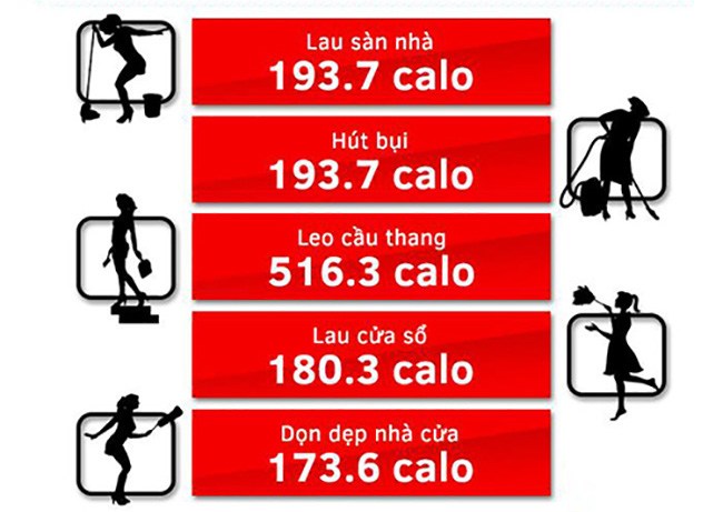 Theo Daily Mail, các nghiên cứu chứng minh rằng mỗi công việc nhà đều có tập trung vào các nhóm cơ khác nhau. Như thế, nếu thực hiện trong cùng 1 ngày thì bạn đã phần nào thay thế cho các phương pháp tập luyện đốt mỡ tăng cơ thường ngày như đi bộ, tập gym, đạp xe…