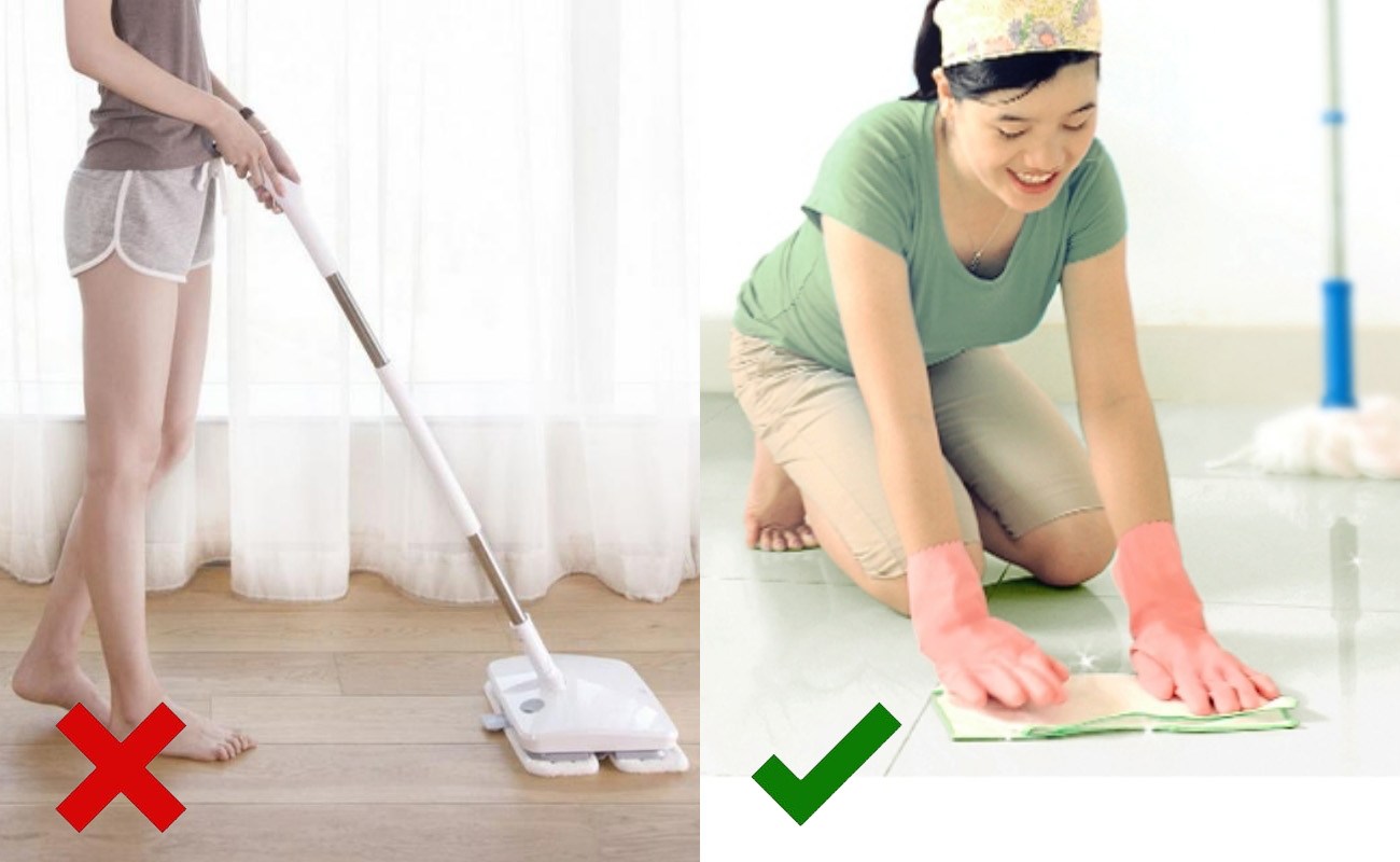 Thay vì lau nhà bằng cây chổi đa năng để lau nhà hoặc máy hút bụi, hãy đổi bằng cách dùng khăn lau nhà hoặc chổi lau nhà. Mỗi khi đưa tay ra xa, bạn cố gắng kéo căng sống lưng và kết hợp hít sâu. Sau đó, từ từ thở ra và thu tay về. Hoạt động đơn giản này sẽ giúp bạn tiêu hao lượng mỡ thừa vô cùng hiệu quả.