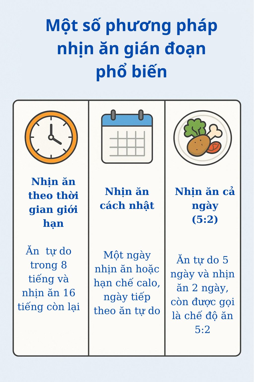 - So với nhịn ăn theo thời gian giới hạn và nhịn ăn 5:2, nhịn ăn cách nhật giúp giảm thêm lần lượt là 1,69kg và 1,05kg.