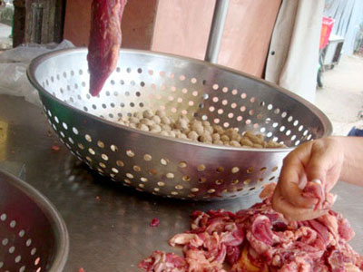 Tận mắt chứng kiến các công đoạn để ra bò viên như thế này, tôi rùng mình nghĩ đến đã từng nhiều lần cho gia đình mình ăn món bò viên này. Tôi thắc mắc tại sao không chế biến bò viên theo công thức gia truyền mà ông bà xưa vẫn làm, chị Thúy hạ giọng: “Nếu làm như thế thì thịt bò phải ngon nhưng ăn lại không dai và giòn, ai mà mua. Hơn nữa, giá thành 1 kg bò viên thành phẩm chừng 40.000 đồng, sau khi bỏ cho thương lái khoảng 120.000 đồng, họ bán lẻ ra khoảng 150.000 - 180.000 đồng/kg. Trong khi giá thịt bò hiện lên tới 240.000 đồng/kg lại qua chừng ấy công đoạn thì ăn gì. Mặt khác, bò viên được các tiệm ăn mua nhiều nhất chủ yếu để nấu phở, hủ tiếu nên họ cũng không chấp nhận mua giá cao”. |