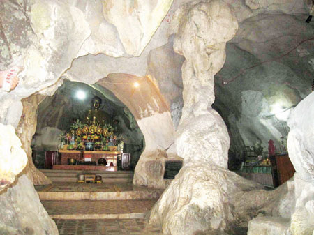 GiadinhNet - Ngôi chùa nằm lọt thỏm trong lòng quả núi với giếng "mắt rồng" quanh năm nước mát lạnh, có đường lên trời - hang âm phủ huyền bí cùng vô số cột đá lớn sừng sững chống lên vòm hang như những trụ chống trời.