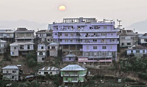 Nơi ở của đại gia đình ông Ziona (Ấn Độ) hoành tráng nhất làng với tông màu hồng - tím yêu thích của chủ nhà.