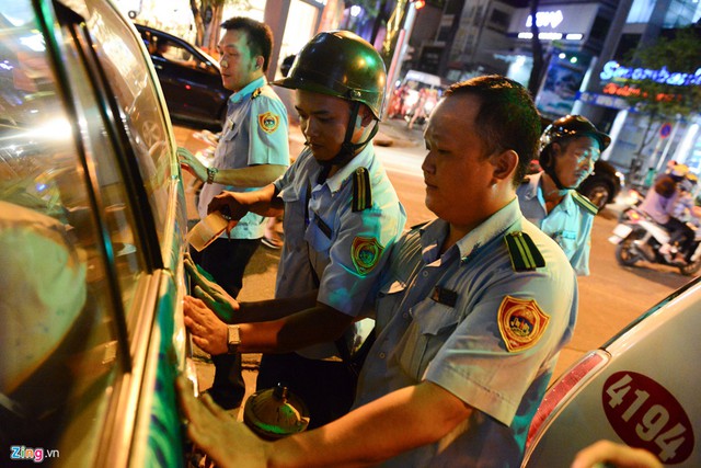 Trên các tuyến đường Hai Bà Trưng, Nguyễn Đình Chiểu, Nguyễn Trãi, Lê Lai..., đoàn kiểm tra phát hiện rất nhiều ôtô đậu trái phép trên vỉa hè. Ông Đoàn Ngọc Hải chỉ đạo lực lượng trật tự đô thị phối hợp với công an phường tiến hành niêm phong, lập biên bản xử phạt. Nhiều trường hợp không có tài xế, đoàn kiểm tra tiến hành niêm phong, cẩu xe về trụ sở UBND quận xử lý.