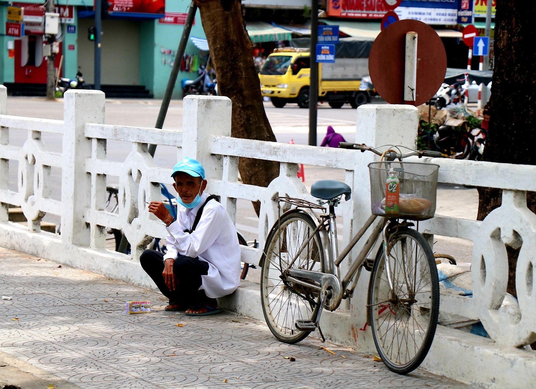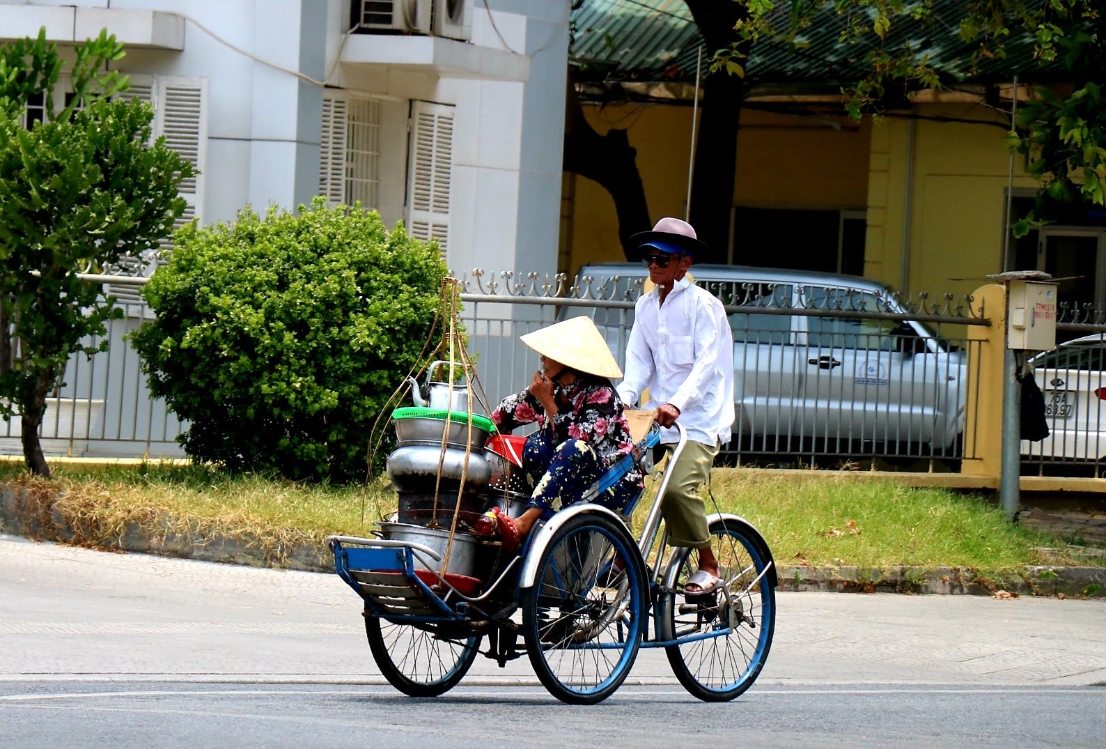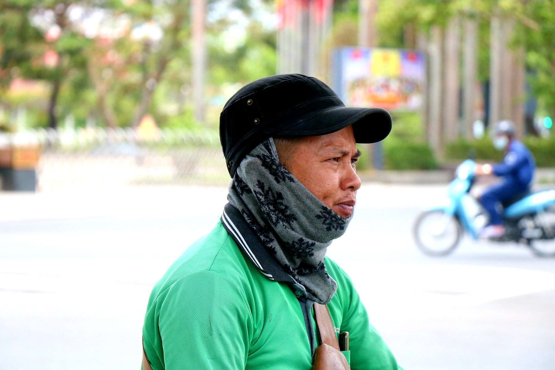 Ông Hoàng Đích (70 tuổi) chở hàng thuê ở Chợ Đông Ba cho biết: “Năm nay dịch bệnh, người thuê chở hàng rất ít, nay lại còn nắng nóng như thế này, vất vả lắm. Tôi làm nghề này ở đây hơn 40 năm, nhưng cứ như năm này thì không biết lấy gì mà ăn.”