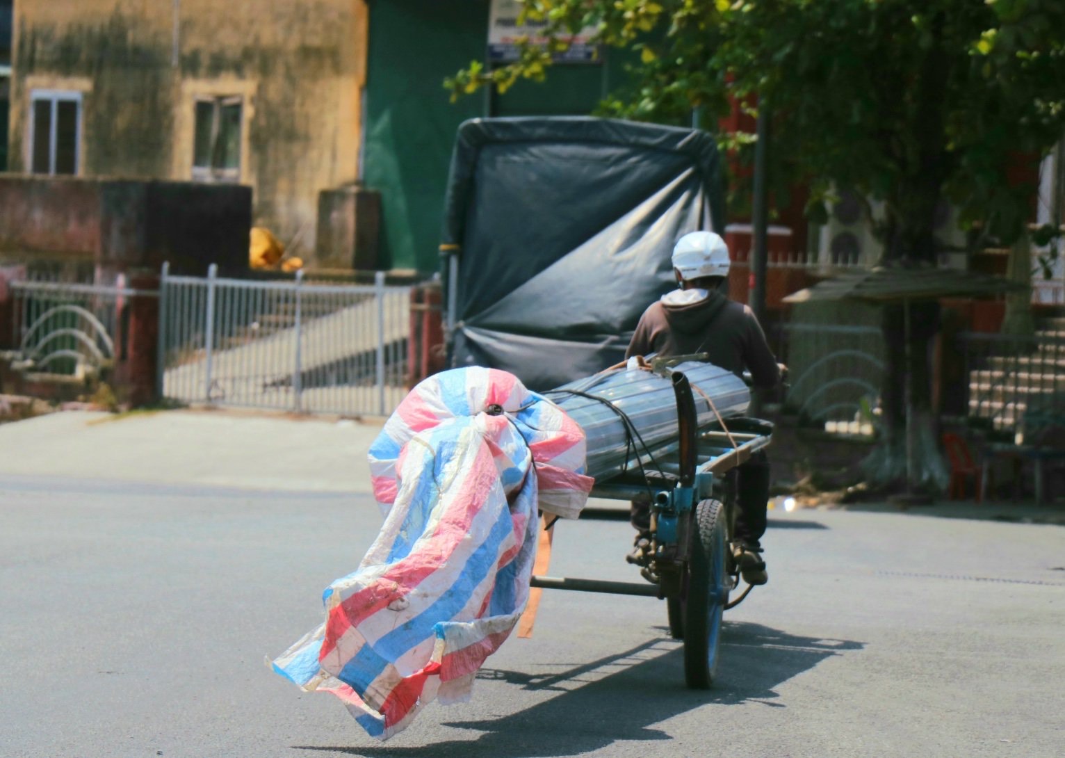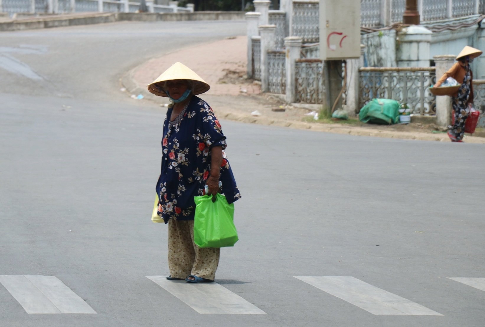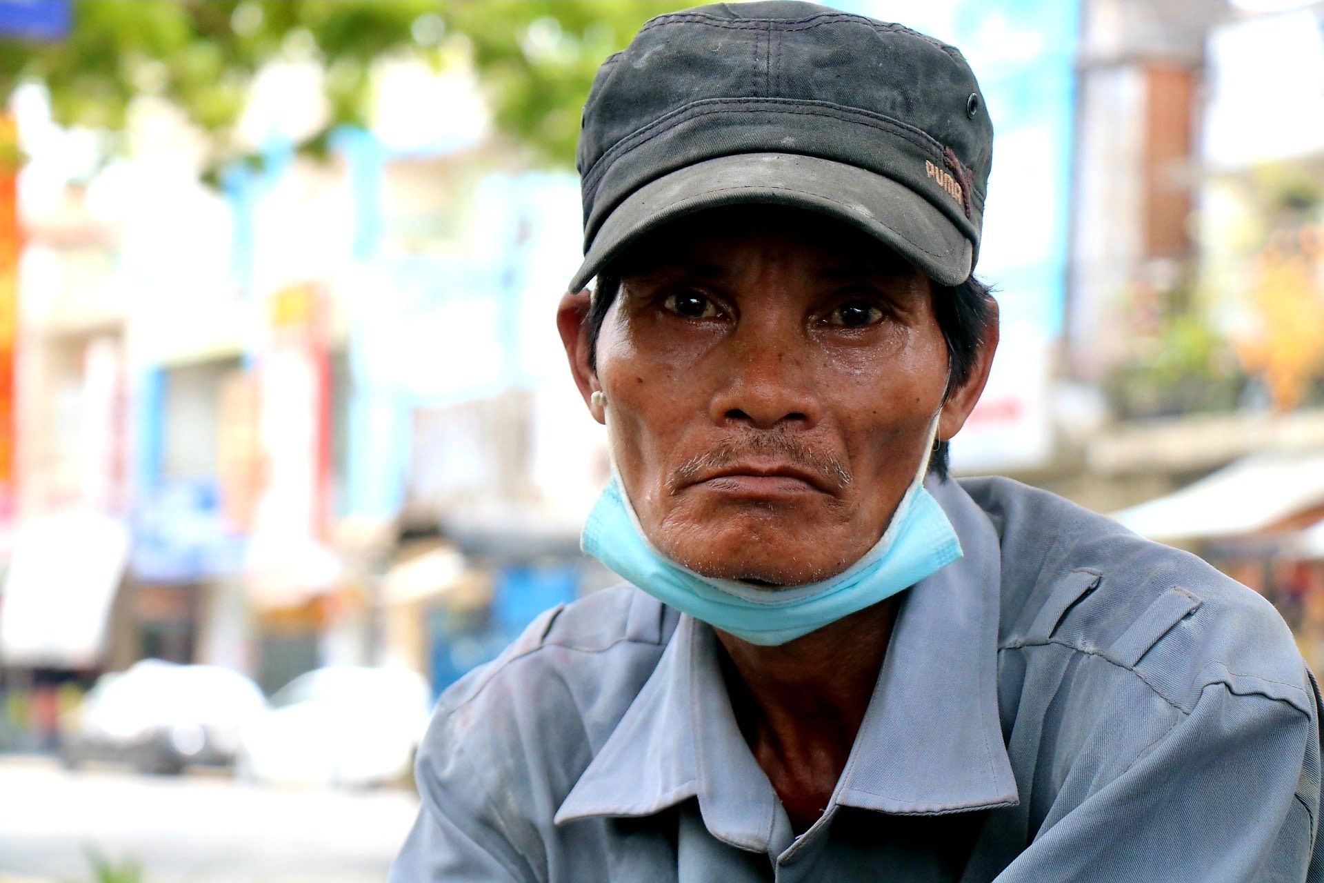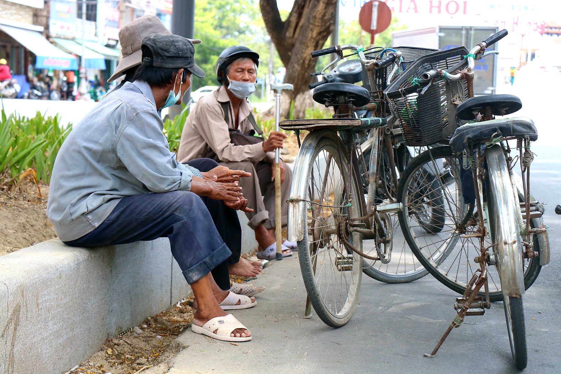 Ông Hoàng Đích (70 tuổi) chở hàng thuê ở Chợ Đông Ba cho biết: “Năm nay dịch bệnh, người thuê chở hàng rất ít, nay lại còn nắng nóng như thế này, vất vả lắm. Tôi làm nghề này ở đây hơn 40 năm, nhưng cứ như năm này thì không biết lấy gì mà ăn.”
