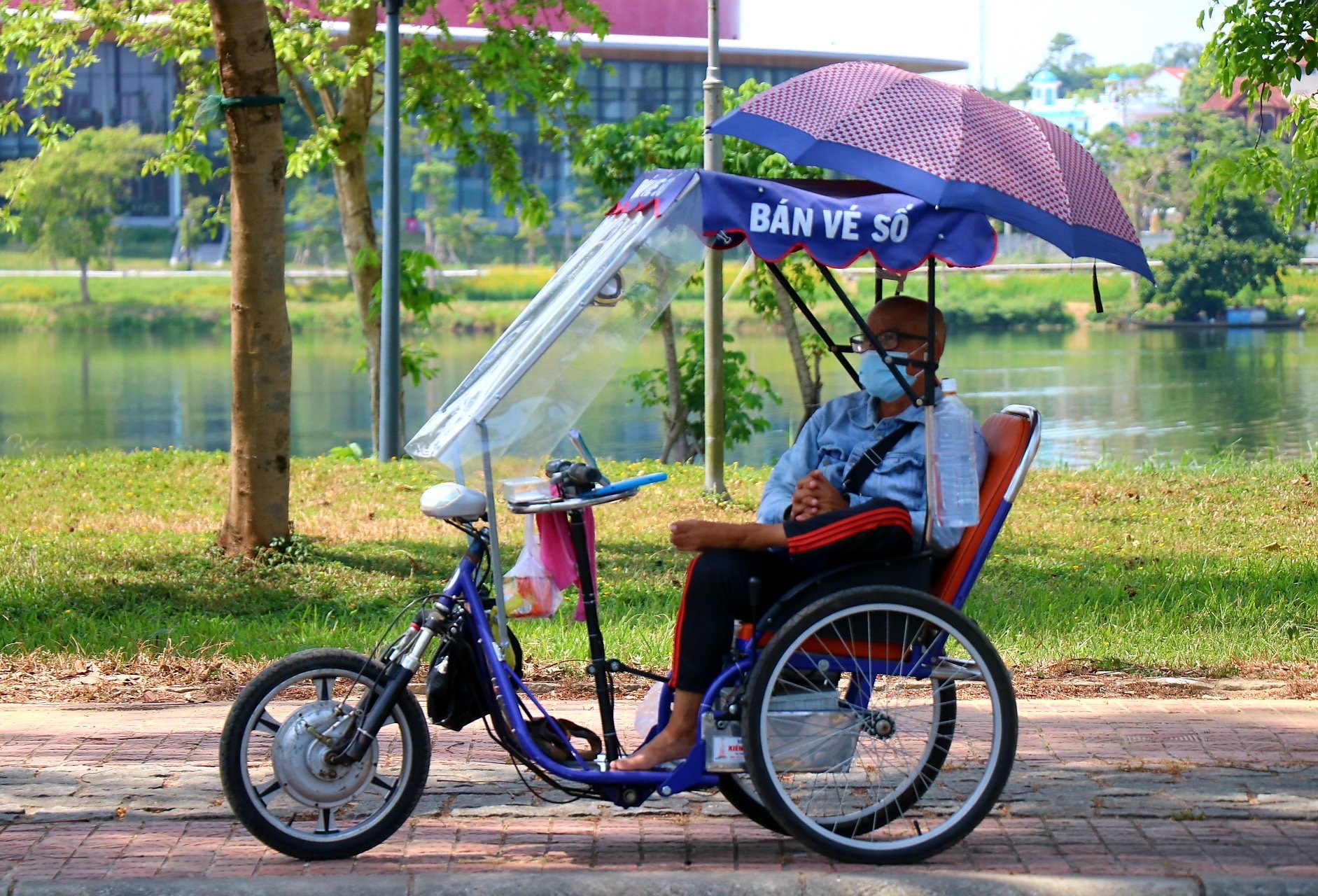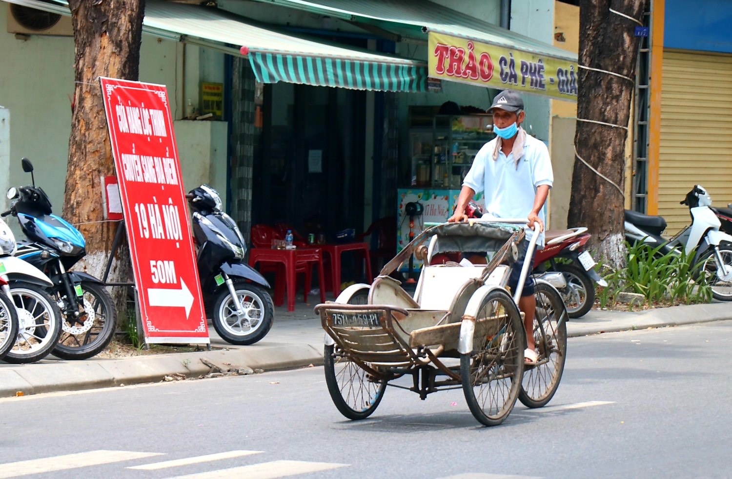 Những tài xế xe xích lô đang cố gượng sức đạp xe chở khách giữa cái nắng “như thiêu, như đốt”. Do ảnh hưởng của dịch, khách du lịch không có cũng như nắng nóng, nhiều tài xế xích lô gặp khó về thu nhập.