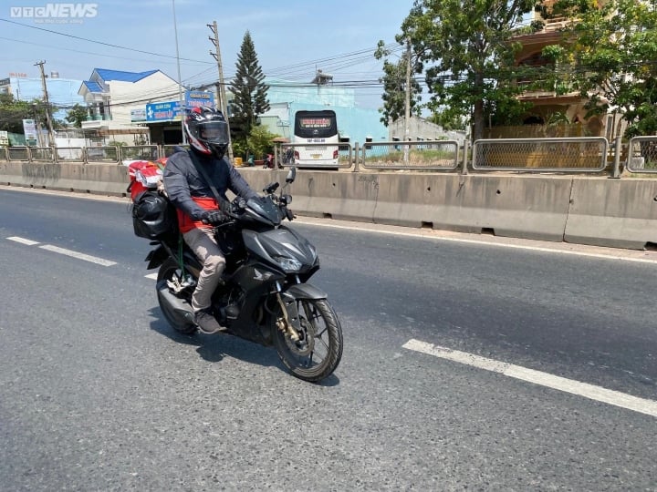 Một mình một xe suốt chặng đường dài. (Ảnh: Đại Việt)