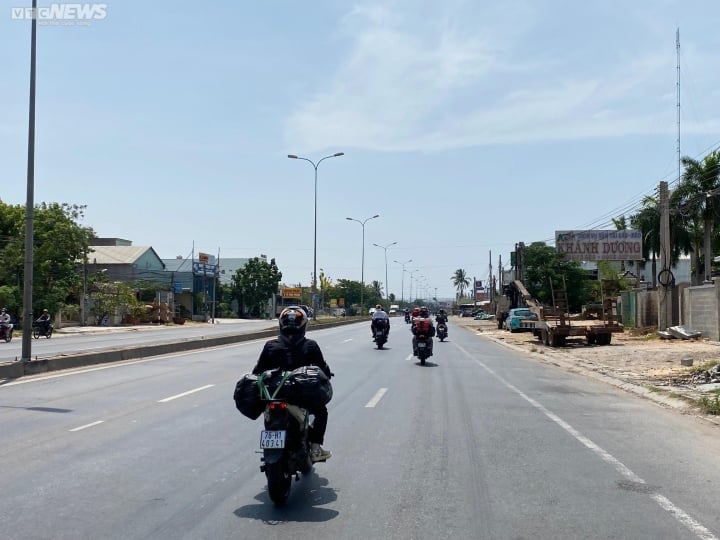 Nhiều bạn trẻ chạy xe máy mang biển kiểm soát của tỉnh Quảng Ngãi di chuyển trên Quốc lộ 1 trong dịp nghỉ lễ. (Ảnh: Đại Việt)