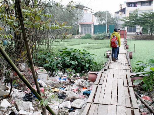 ![]() Đầm Tứ Liên dài 2 km chảy qua cụm 1 và cụm 5, Tứ Liên (Tây Hồ, Hà Nội) bị ô nhiễm trầm trọng, trở thành ổ ruồi muỗi khổng lồ. Cái đầm tù đọng đang ngày một thu hẹp do nước thải, rác từ khu dân cư xung quanh xả xuống |