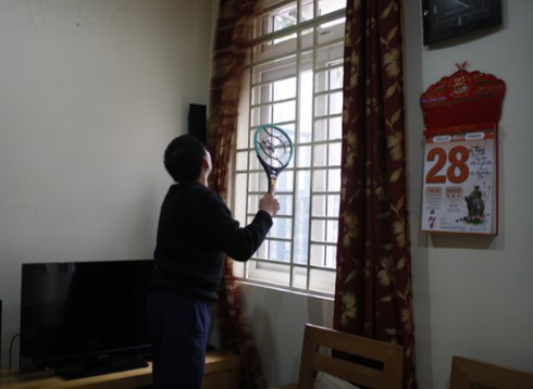 ![]() Dù đã đóng kín cửa và che rèm nhưng mỗi ngày ông Hà (Tứ Liên) vẫn phải vợt muỗi ở phòng khách hơn chục lần |