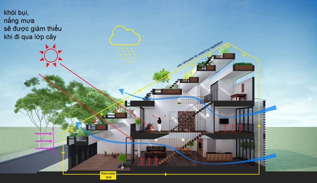 Ngôi nhà 3 tầng ở thành phố Hà Tĩnh xây dựng dựa trên ý tưởng hòa trộn kiến trúc và nông nghiệp - nền tảng của sự phát triển bền vững.
