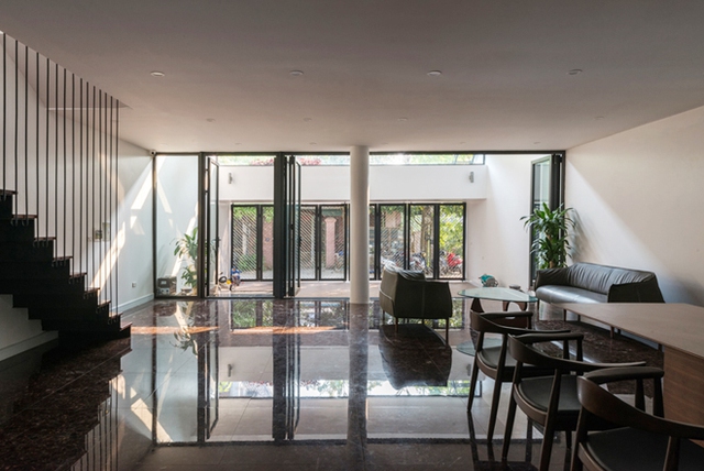 Chủ nhà có thể mở rộng cửa để đón nhận nắng gió từ sân chơi phía trước.
