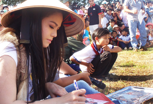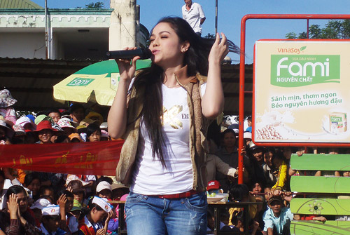 Cô ca sỹ khá nổi danh với ca khúc Lâu đài cát đã có một ngày thật ý nghĩa khi được trở thành người trợ giúp cho một gia đình nghèo làm nghề bán bánh mì ở Long Khánh trong chương trình “Vượt lên chính mình” do MC Quyền Linh dẫn dắt.