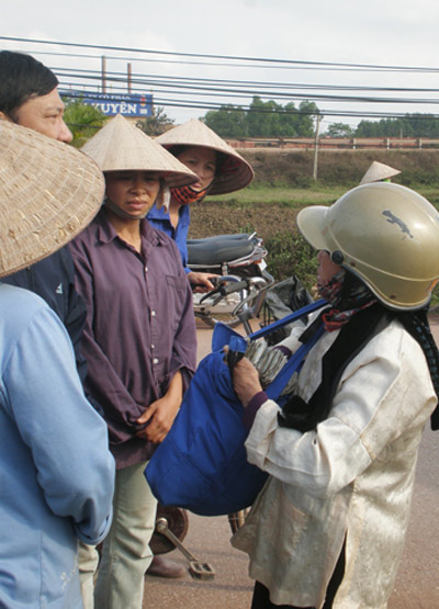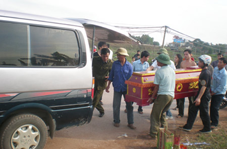 Người dân địa phương giúp đưa thi hài nạn nhân lên xe về quê mai táng. |