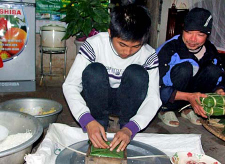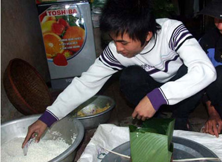 Đã thành thói quen, cứ 28 Tết là Đỗ Tuấn Linh (Hậu Lộc, Thanh Hóa) lại từ chối hết mọi cuộc hẹn để gói bánh chưng chuẩn bị đón năm mới. Từ sáng sớm, mẹ Linh đã vớt gạo, đãi đỗ và đi chợ chuẩn bị lá dong, lạt buộc, thịt mỡ. Trong lúc mẹ loay hoay rửa lá, Linh tước lạt, làm khuôn. Cậu cho hay, gạo đã được mẹ cậu ngâm từ tối qua với một chút muối, sáng hôm sau vớt ra để ráo nước, như vậy bánh mới nhừ và ngon.