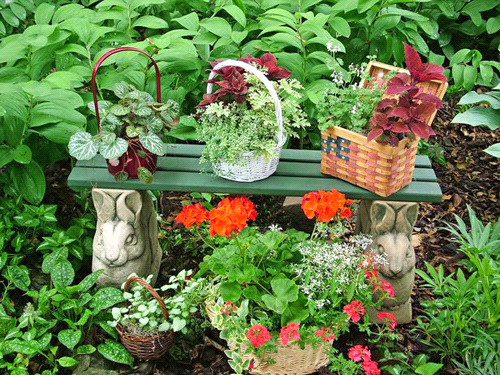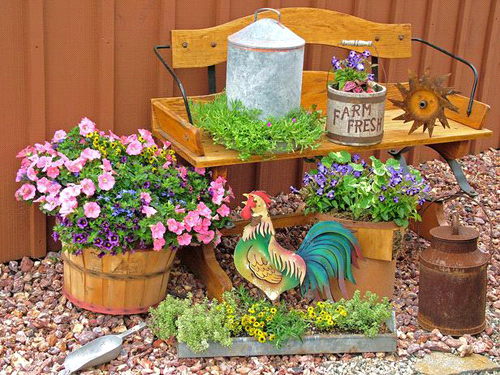 Chỉ với những món đồ trang trí kết hợp cùng với bộ hoa tự chế cũng tạo nên được tiểu cảnh đẹp cho sân vườn.