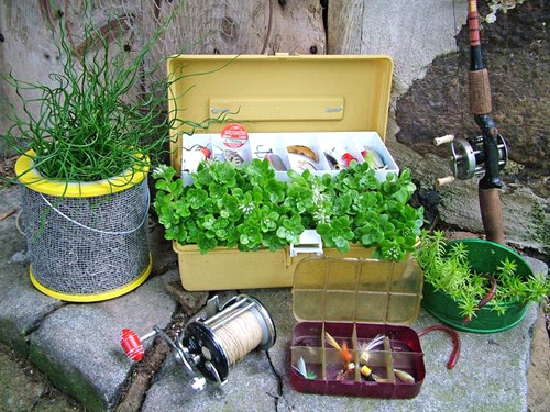 Bên cạnh giỏ xách thì hộp đồ cũng là vật dụng thích hợp để bạn tha hồ trồng những loại hoa, cây cảnh nhỏ khác nhau.