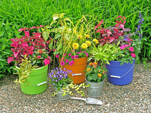 Chiếc xô nhỏ nhiều sắc màu hay các hộp nhựa đem trồng cây không chỉ đẹp mà nó còn khá thuận tiện trong việc di chuyển. Bạn có thể bố trí nó ở nhiều vị trí khác nhau.
