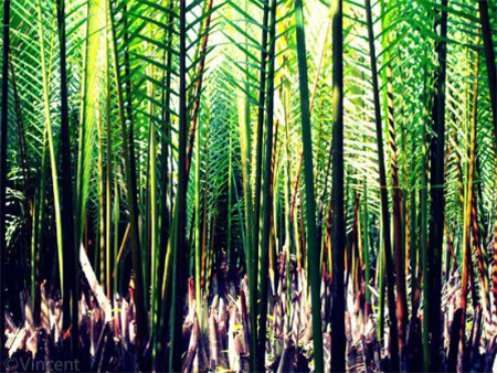 Vườn dừa nước sau nhà. Thường thì nhà người dân không có rào ngăn cách mà họ ngăn nhau bằng các con mương hay lạch nhỏ, và hai bên mọc rất nhiều dừa nước. |