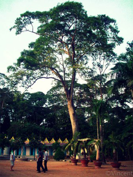 Vườn chùa với nhiều gốc cổ thụ. |