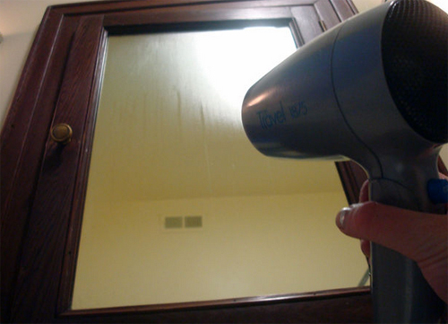 Hơi nước bám trên cửa kính, gương cũng sẽ tan rất nhanh khi có hơi nóng chĩa vào.