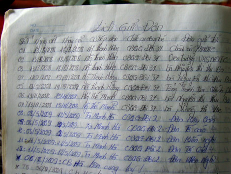 ![]() Cuốn sổ ghi chép lịch gửi đơn. |