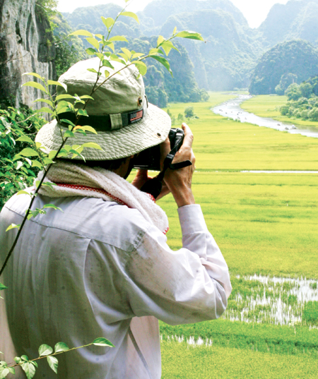 Trèo lên cao để ghi hình phong cảnh. |