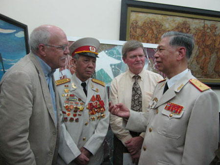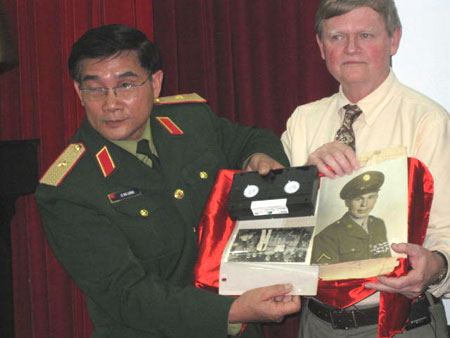 Đoàn cựu chiến binh Mỹ mang đến những tài liệu, những báo cáo về tình hình chiến tranh Việt Nam cách đây 60 năm khi họ còn hoạt động trong tổ chức OSS, tiền thân của cơ quan tình báo CIA (Mỹ) ở Việt Nam. “Tài liệu này sẽ cho thấy ngày đó, chúng tôi đã có những báo cáo cho Washington về việc ngăn chặn chiến tranh VN nhưng rất tiếc, giữa lúc tình hình thế giới rối ren bởi chiến tranh thế giới thứ 2 vừa kết thúc, những đề nghị của chúng tôi đã không được quan tâm và điều đó đã dẫn đến những sai lầm đáng tiếc mà nước Mỹ đã và đang phải gánh chịu vì đã gây tổn thương cho cả người Mỹ lẫn người dân Việt Nam”.