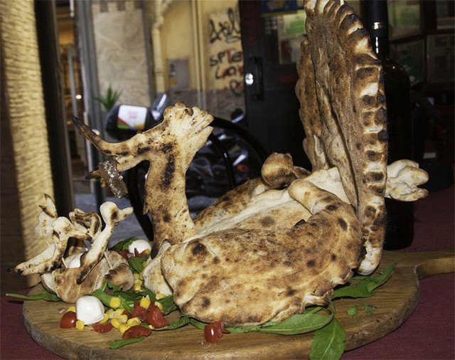 Carmine Mauro, bếp trưởng của Pizzeria 900, thực sự là một nghệ sĩ. Từ năm 7 tuổi, ông đã nặn những chiếc bánh pizza nhồi bông thành những tác phẩm nghệ thuật phức tạp. Chiếc pizza con công với jambon, ricotta, cà tím nướng và trang trí với một con cá cơm ướp trong mỏ cùng một ổ gà con và trứng mozzarella, là món ăn bán chạy nhất.