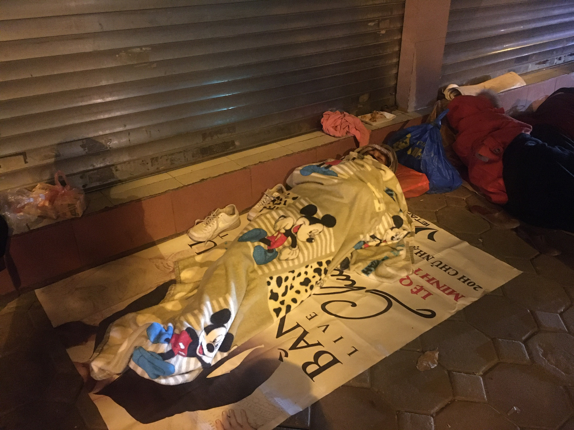 Giấc ngủ chập chờn giữa nền gạch buốt lạnh sau ngày vật vã của những người vô gia cư như bà Luân, bà Thanh.